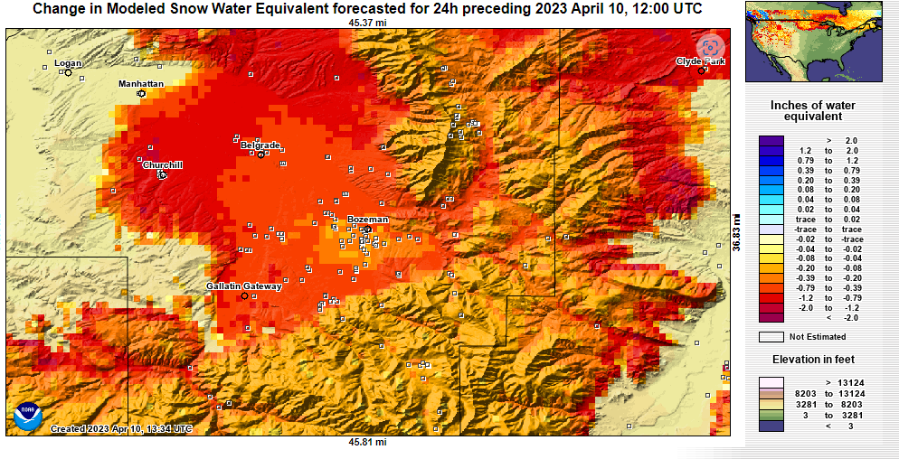 With the continued warm temperatures, we should assume a continued increase in snowmelt until it is gone or temperatures moderate with freezing at night.