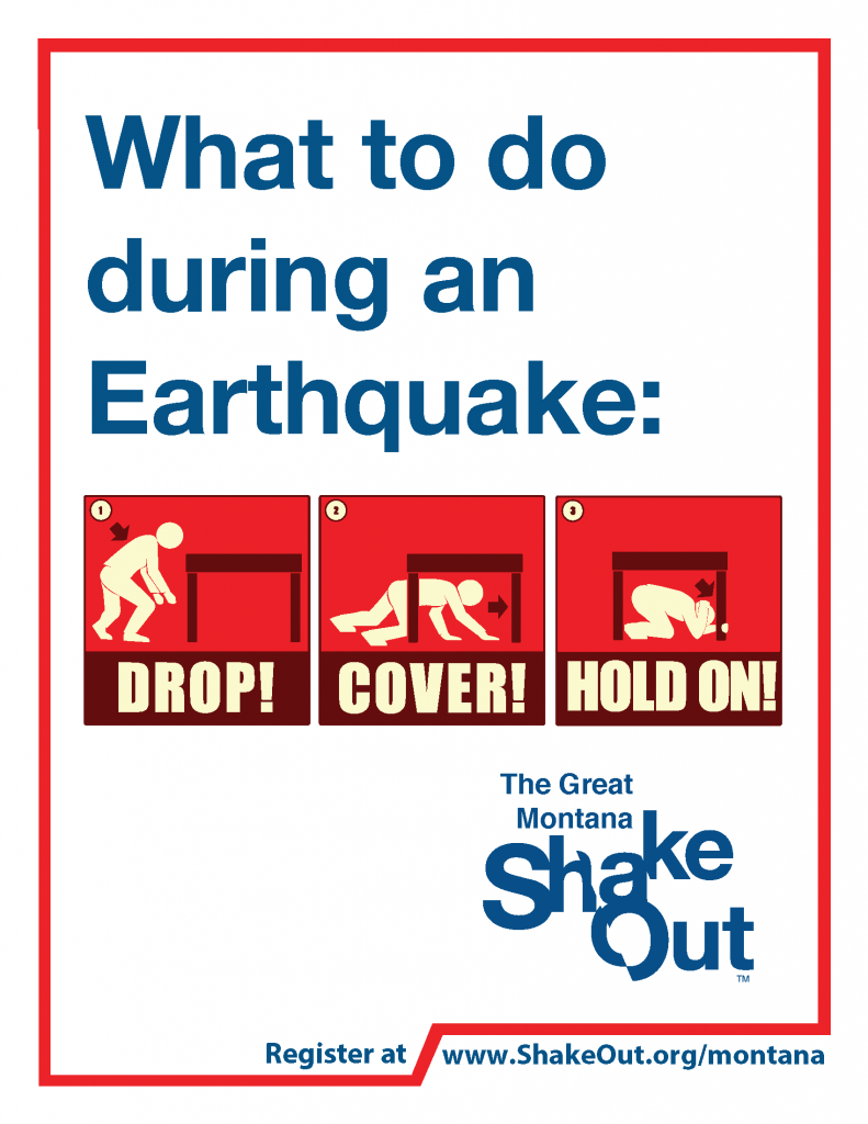 The Great Montana Shakeout is an annual earthquake exercise that takes place at 10:17 am on October 17, 2019. This is a great opportunity to spend a couple minutes wherever you are to practice and review what you would do in an earthquake. A wide variety of material for many audiences is available to support you and your organization during the exercises at www.shakeout.org/montana/resources/.